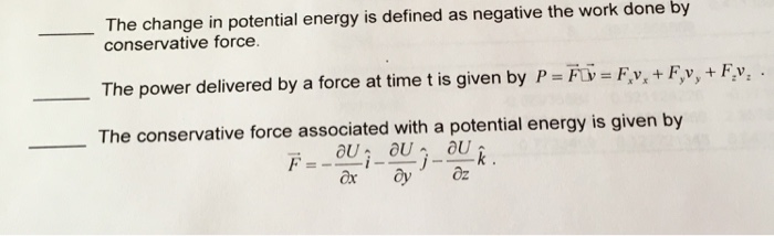 Solved The Change In Potential Energy Is Defined As Negative Chegg Com
